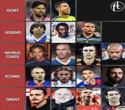 这下还有争议历史级球星分档图:大罗第二档!鲁尼贝尔同一档